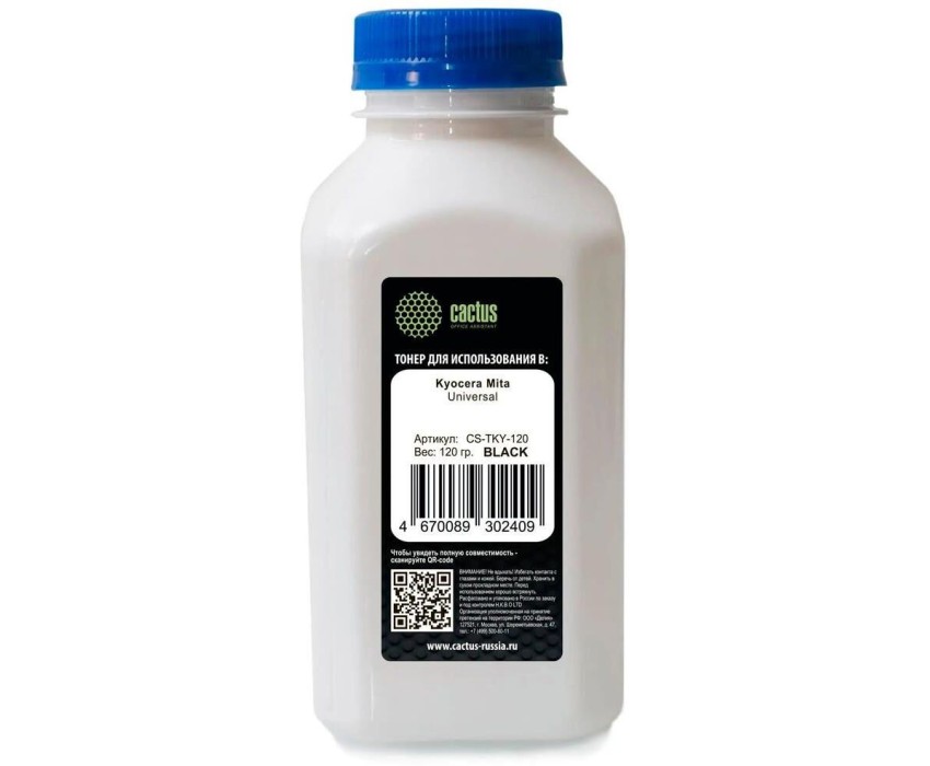 Тонер CACTUS Тонер CS-TKY-120, для Kyocera Universal TK-160/1100/1130/1150/1200/1110/1120, черный, 120грамм, флакон