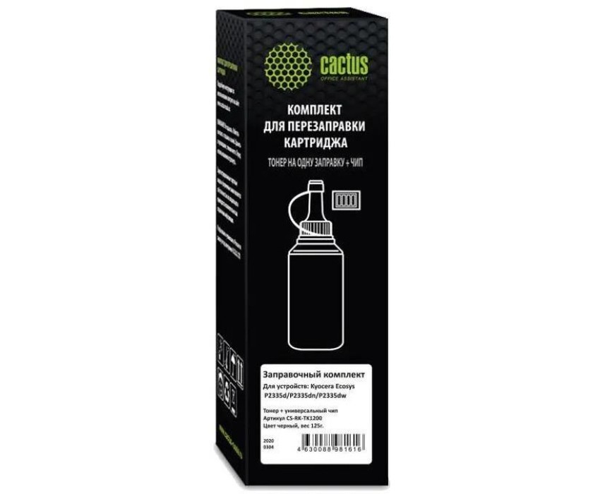 CACTUS Тонер CS-RK-TK1200 черный флакон 125гр. (в компл.:чип) для принтера Kyocera Ecosys P2335d/P2335dn/P2335dw