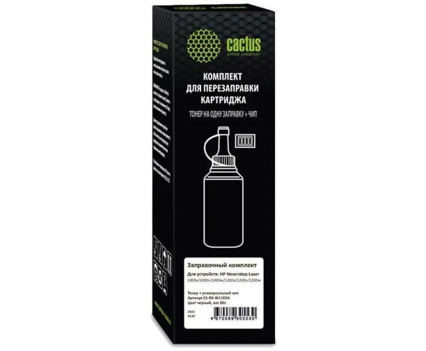 CACTUS Тонер CS-RK-W1103A черный флакон 80гр. (в компл.:чип) для принтера HP Neverstop Laser 1000/1200