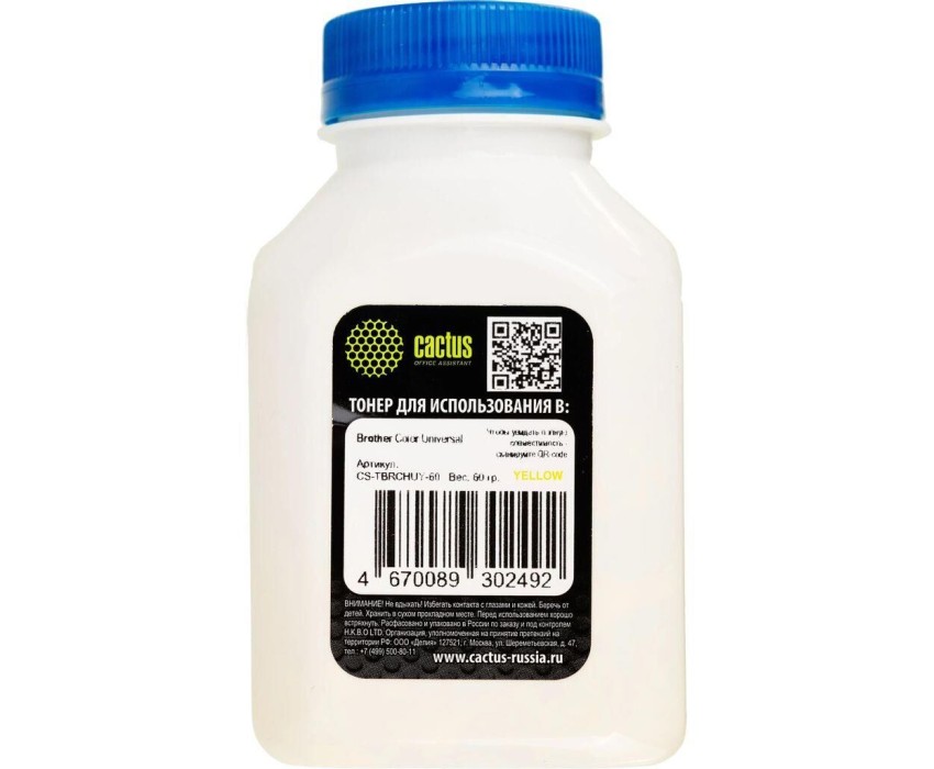 CACTUS Тонер CS-TBRCHUY-60 желтый флакон 60гр. для принтера Brother Color Universal TN-230/241/213/217/320/421