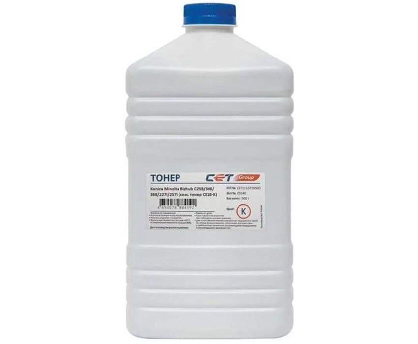 CET Тонер CE28-K 111072K500 черный бутылка 500гр. для принтера KONICA MINOLTA Bizhub C258/308/368/227i/257i