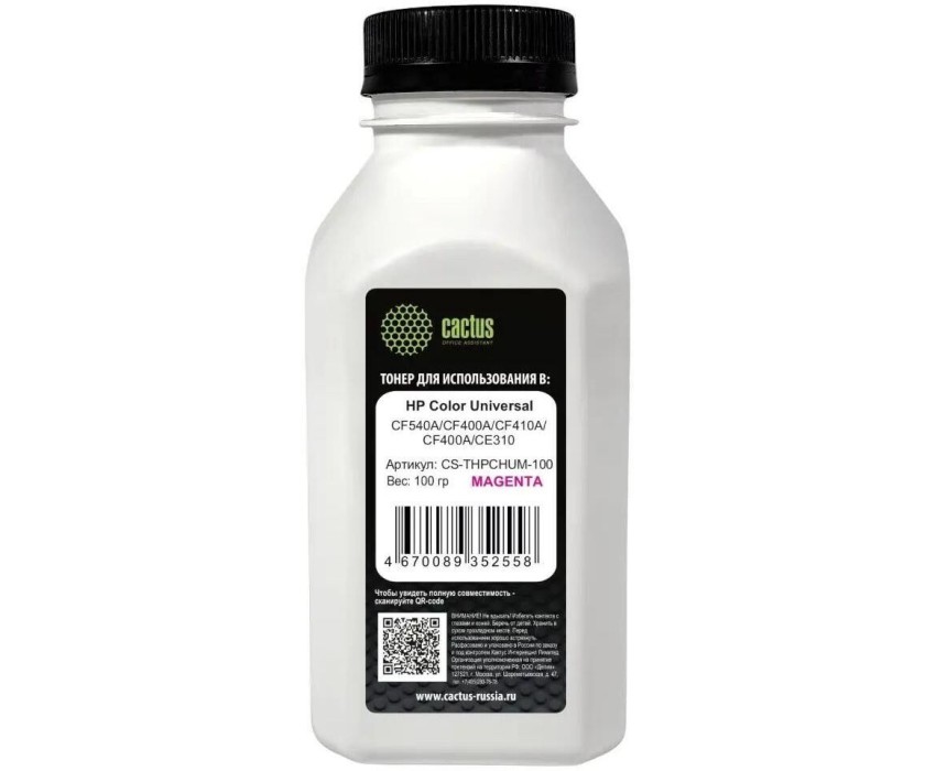 CACTUS Тонер CS-THPCHUM-100 пурпурный флакон 100гр. для принтера HP Color Universal CF540A/CF400A/CF410A/CF400A/CE310