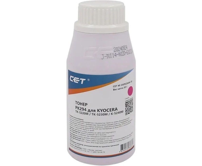CET Тонер PK294, для Kyocera Ecosys M5521cdn/M5526cdw/M6630cidn/P5021cdn/P5026cdn/P6230cdn, пурпурный, 50грамм, бутылка
