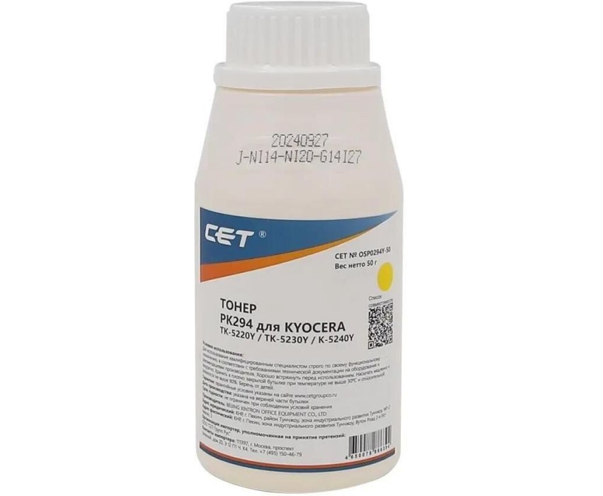 CET Тонер PK294, для Kyocera Ecosys M5521cdn/M5526cdw/M6630cidn/P5021cdn/P5026cdn/P6230cdn, желтый, 50грамм, бутылка