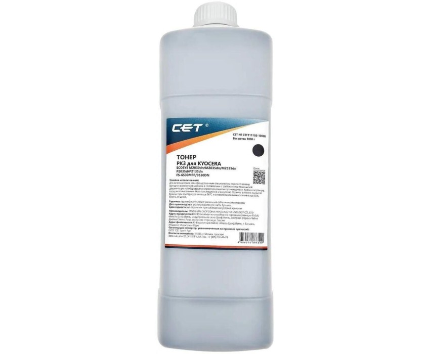 CET Тонер 111102-1000B черный бутылка 1000гр. для принтера Kyocera Ecosys M2035DN/M2030DN/P2035D/P2135DN
