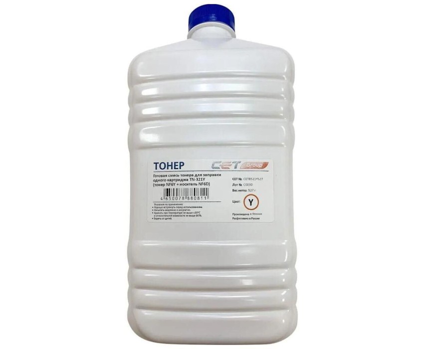 CET Тонер NF6Y/NF6D 8521Y-527 желтый бутылка 527гр. (в компл.:девелопер) для принтера Konica Minolta Bizhub C224/284/364