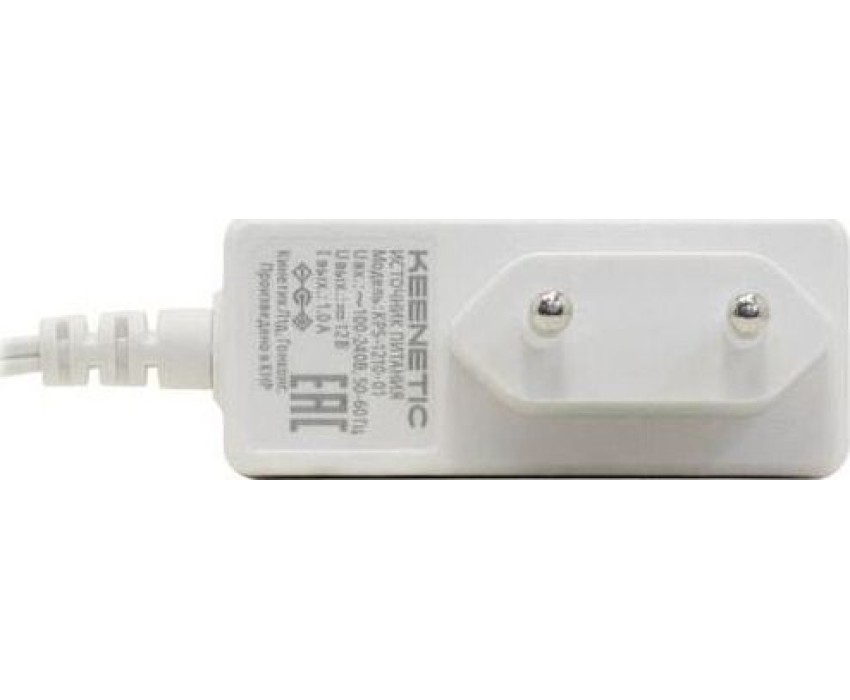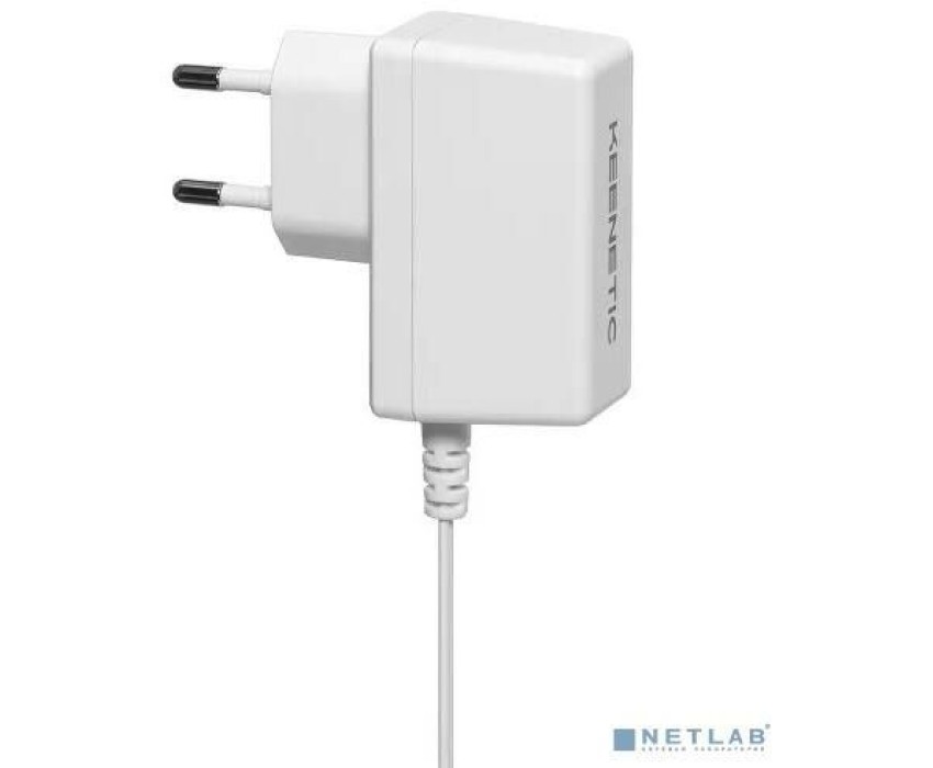 адаптер питания от сети 100-240 В, постоянное выходное напряжение 12 В с током до 1 А, совместим с любыми интернет-центрами Keenetic, которые имеют напряжение питания 9 или 12 В и потребляемый ток до 1 А, кабель 1.5 м