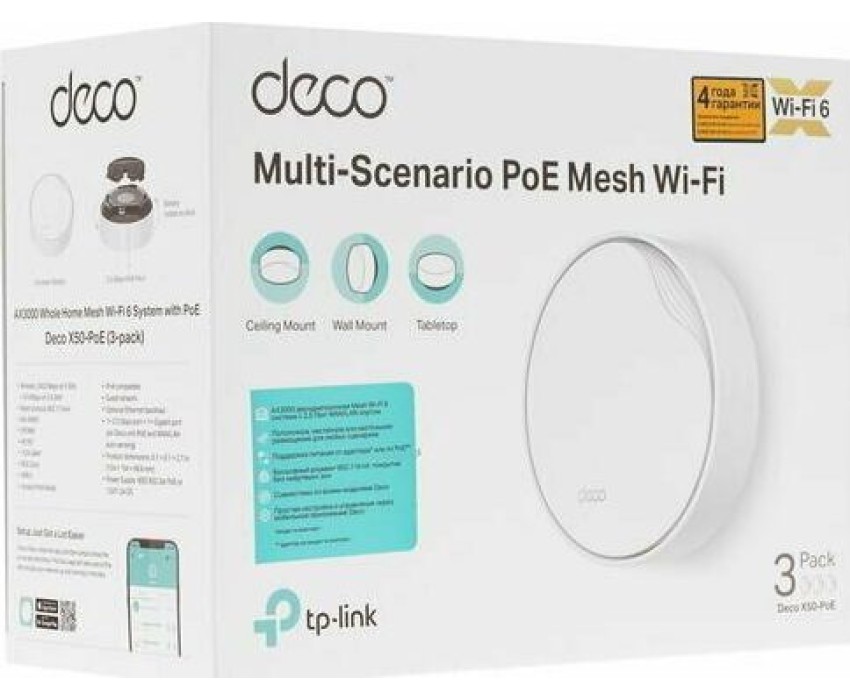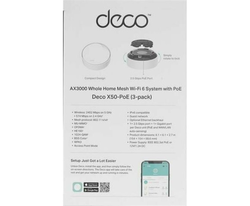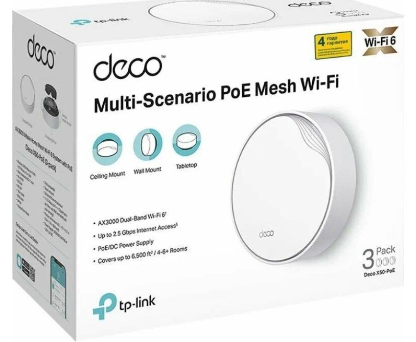 TP-LINK Бесшовный Mesh роутер Deco X50(3-Pack), Wi-Fi 6, AX3000, 2.4/5ГГц, 3 WAN/LAN, белый, 3 шт. в комплекте