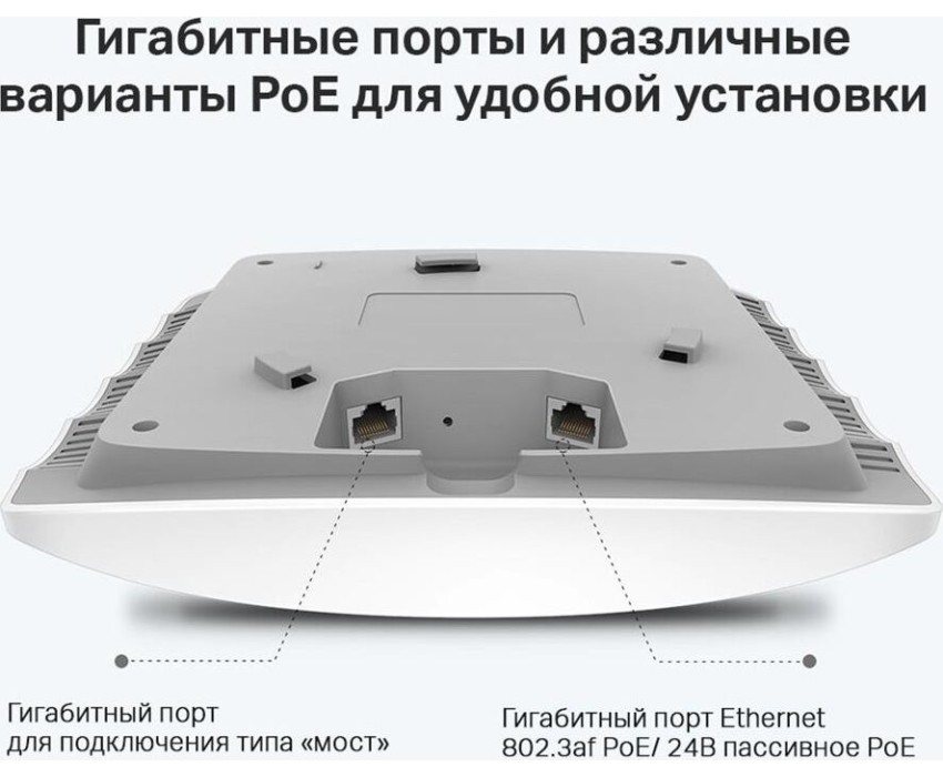Входной интерфейс: 10/100/1000BASE-TX. Вес: 370. Количество выходных портов 10/100/1000BASE-TX: 2. Особенности: Чипсет класса Enterprise от QCA, высокомощный передатчик, а также поддержка актуальных стандартов связи 802.11ac Wave 2 и технологии MU-MIMO обеспечивают скорость до 1750 Мбит/с, а также дальнобойное покрытие на диапазонах Wi-Fi 2,4 ГГц и 5 ГГц.. Количество диапазонов: двухдиапазонный. Цвет: белый. Название процессора: Qualcomm. Максимальная скорость по всем WiFi диапазонам: 1750. Прочие функции безопасности: 802.1X, Radius accounting, ACL, Портал аутентификации, Поддержка внешнего портала аутентификации, Обнаружение несанкционированных точек доступа.. Прочие протоколы и функции: Multi-SSID, Airtime Fairness, Band Steering, MU-MIMO, 802.11k/v, Ограничение скорости, Расписание перезагрузки.. Особенности портов: поддержка IEEE802.3af PoE и пассивного PoE. Количество антенн: 6. Тип антенн: внутренние. Скорость 802.11n, 2.4 ГГц: 450. Скорость 802.11ac, 5 ГГц: 1300. Класс WiFi: AC1750. Габариты упаковки (ед) ДхШхВ: 0.34x0.23x0.071. Вес упаковки (ед): 1.2. Диапазоны частот: 2.4/5. Кол-во портов Ethernet: 2. Скорость передачи данных Ethernet (макс.): 1000. Многопотоковая передача данных: MU-MIMO. Гарантия: 36 мес.. Преимущества: Fast roaming (802.11k/v) обеспечивает высокую мобильность и автоматически переключает клиентские устройства с одной точки доступа на другую Интерфейс централизованного управления и мобильное приложение Omada. Облачный доступ к контроллеру. Функци…