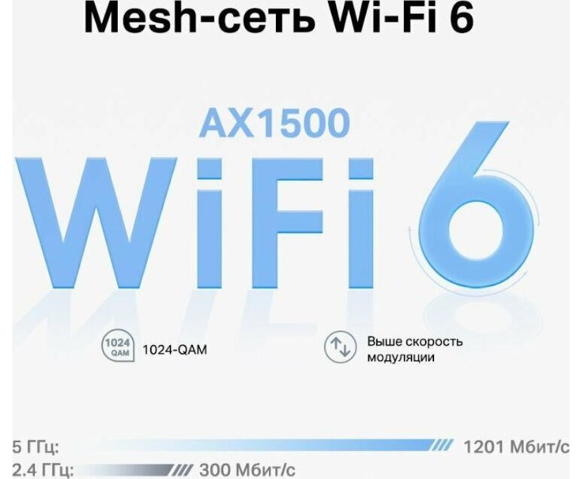 Входной интерфейс: 10/100/1000BASE-TX. Предназначено для установки: в помещениях. Количество выходных портов 10/100/1000BASE-TX: 2. Особенности: Единая сеть: при перемещении по дому мобильное устройство будет автоматически подключаться к модулю с наиболее качественным сигналом. Родительский контроль: создайте собственный профиль для каждого члена семьи, а также ограничивайте время пребывания в сети и блокируйте непристойные сайты.. Количество диапазонов: двухдиапазонный. Цвет: белый. Максимальная скорость по всем WiFi диапазонам: 1501. Прочие функции безопасности: Управление доступом. Количество внутренних и внешних антенн: 2. Тип антенн: внутренние. Особенности антенн: Технология Mesh Опциональное транзитное подключение по кабелю позволит создать бесшовную сеть 2 встроенные антенны Из нескольких антенн формируется мощный сигнал с большим радиусом действия Beamforming Увеличивает дальность Wi-Fi сигнала за счёт его концентрации в направлении местоположения. Скорость 802.11n, 2.4 ГГц: 300. Для геймеров: да. Класс WiFi: AX1500. Скорость 802.11ax, 5 ГГц: 1201. Комплектация: Mesh-модуль (1 шт.) Кабель Ethernet (1 шт.) Адаптер питания (1 шт.) Краткое руководство по установке.. Габариты упаковки (ед) ДхШхВ: 0.175x0.124x0.13. Вес упаковки (ед): 0.88. Тип вилки: Тип C (Европейская без заземления). Частота электросети: 50 - 60 Гц. Влажность воздуха при эксплуатации: 10-90% без конденсата. Диапазоны частот: 2.4/5. Кол-во портов WAN/LAN: 2. Количество одновременно работающих диапазонов…