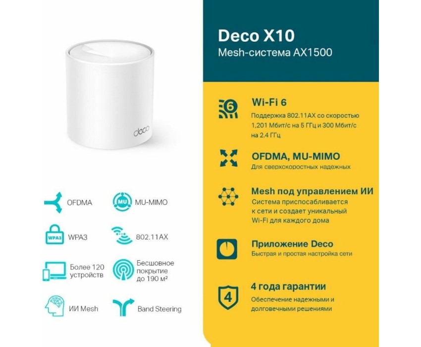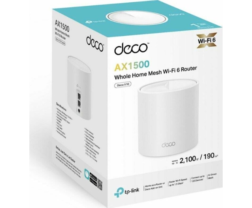 TP-LINK Бесшовный Mesh роутер Deco X10, Wi-Fi 6, AX1500, 2.4/5ГГц, 2 WAN/LAN, белый [deco x10(1-pack)]
