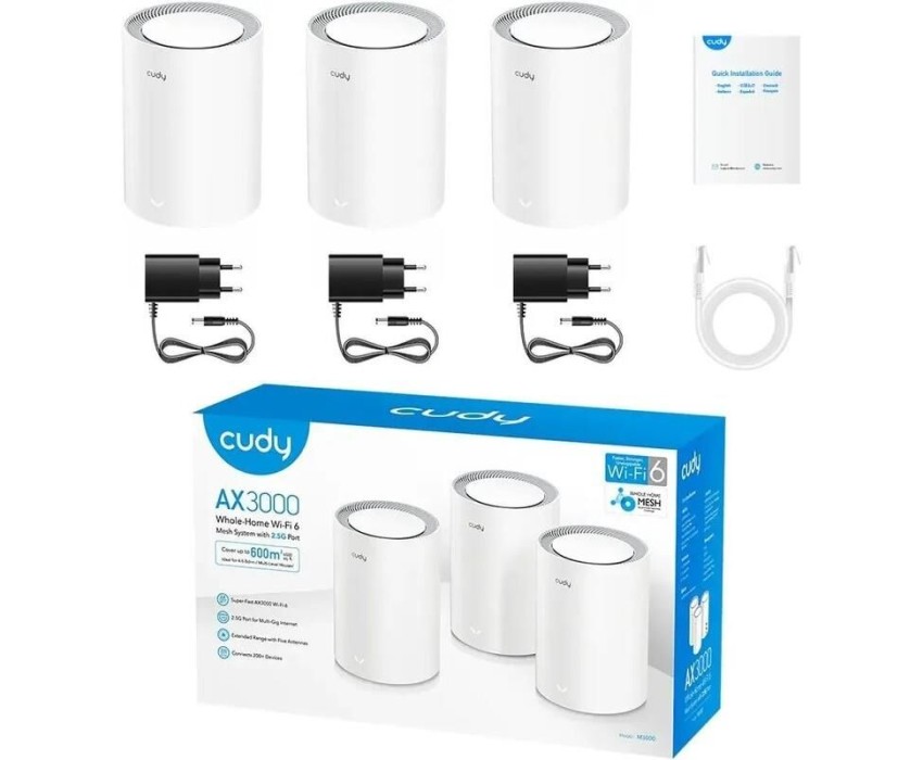 CUDY Бесшовный Mesh роутер M3000, Wi-Fi 6, AX3000, 2.4/5ГГц, 1 LAN, белый, 3 шт. в комплекте [m3000(3-pack) white]