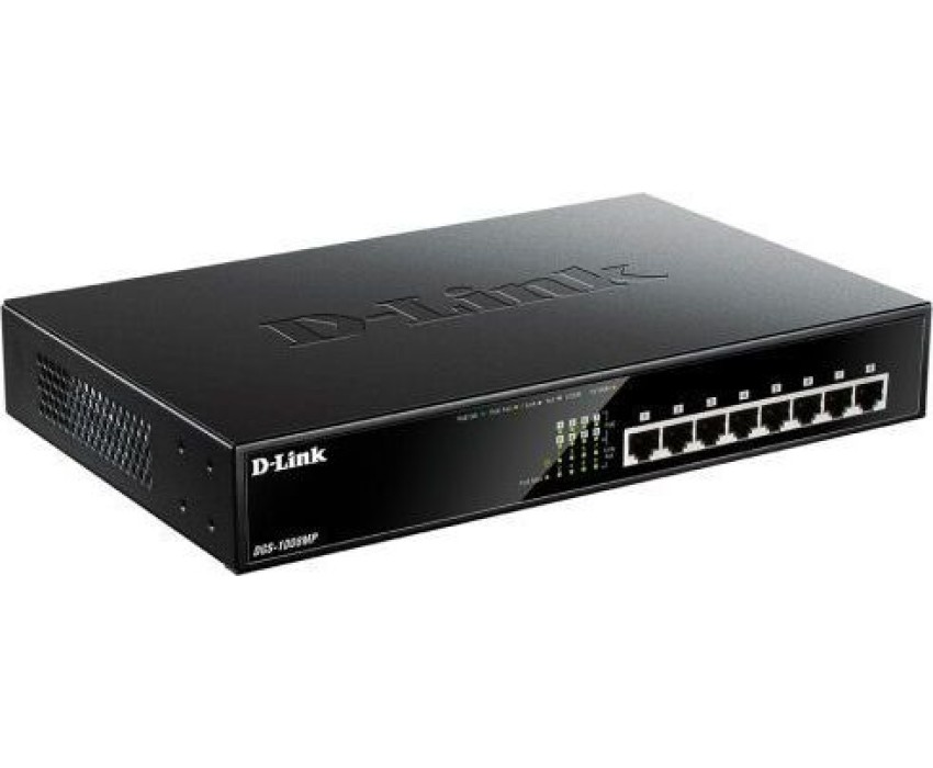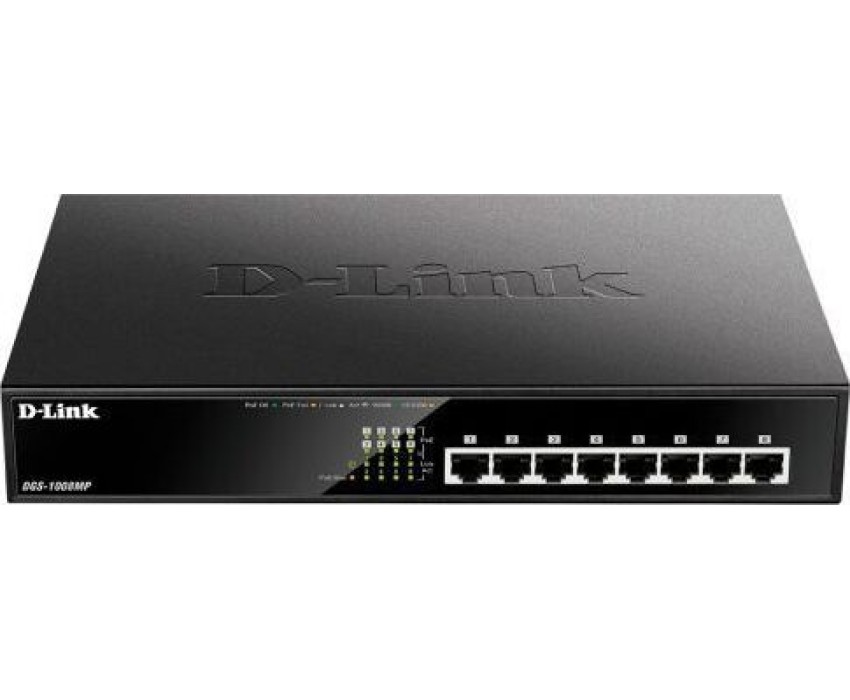 Неуправляемый, установка в стойку, 8 портов Ethernet 1 Гбит/с, автоопределение MDI/MDIX, PoE/PoE+, таблица MAC 8000, DGS-1008MP-B1A