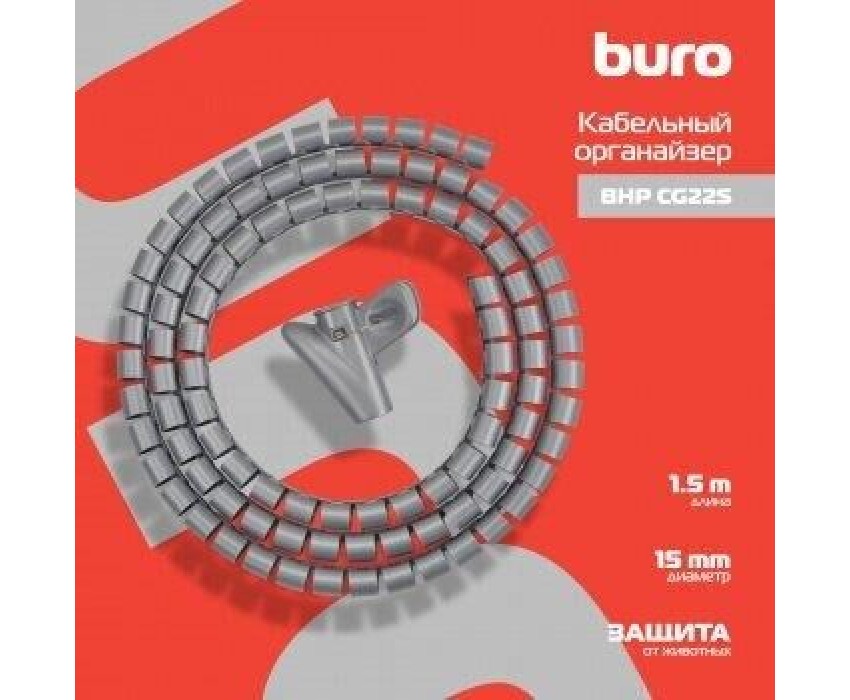 BURO Кабельный органайзер BHP CG155S Spiral Hose 15x1500mm Silver