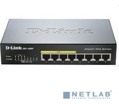 D-Link DGS-1008P/E1A Неуправляемый коммутатор с 8 портами 10/100/1000Base-T (4 порта PoE 802.3af/at, PoE-бюджет 80 Вт)