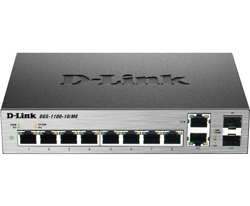 D-LINK SMB D-Link DGS-1100-10/ME/A2A Управляемый L2 коммутатор с 8 портами 10/100/1000Base-T и 2 комбо-портами 100/1000Base-T/SFP