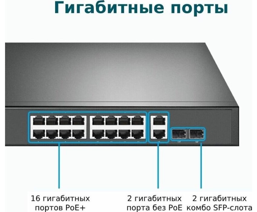 Тип: неуправляемый. Порты PoE+: 16. PoE бюджет: 250. Исполнение: внутреннее. Материал корпуса: металл. Уровень коммутатора: L2. Габариты упаковки (ед) ДхШхВ: 0.526x0.25x0.08. Вес упаковки (ед): 3.08. Базовая скорость передачи данных: 1000 Мбит/с. Внутренняя пропускная способность: 36 Гбит/сек. Сетевые стандарты: IEEE 802.3, IEEE 802.3u, IEEE 802.3ab, IEEE 802.3x, IEEE 802.3af, IEEE 802.3at, IEEE 802.1q, IEEE 802.1p. Гарантия: 36 мес.. Порты 10-100-1000Base-T (Gigabit Ethernet): 18 шт.. Комбо порты 1000BASE-T/Mini GBIC (SFP), из числа гигабитных: 2 шт.. Размеры: 440x180x44мм. Таблица MAC-адресов: 8K. Установка: возможен монтаж в 19" стойку. Порты: 10/100/1000BASE-T 18 шт., из них комбо-порты 1000BASE-T/Mini GBIC (SFP) 2 шт. Исполнение: внутреннее; материал корпуса: металл. Тип: неуправляемый, возможен монтаж в 19" стойку, L2. Таблица MAC-адресов: 8K. Поддержка PoE: портов PoE+ 16шт, PoE бюджет 250 Вт