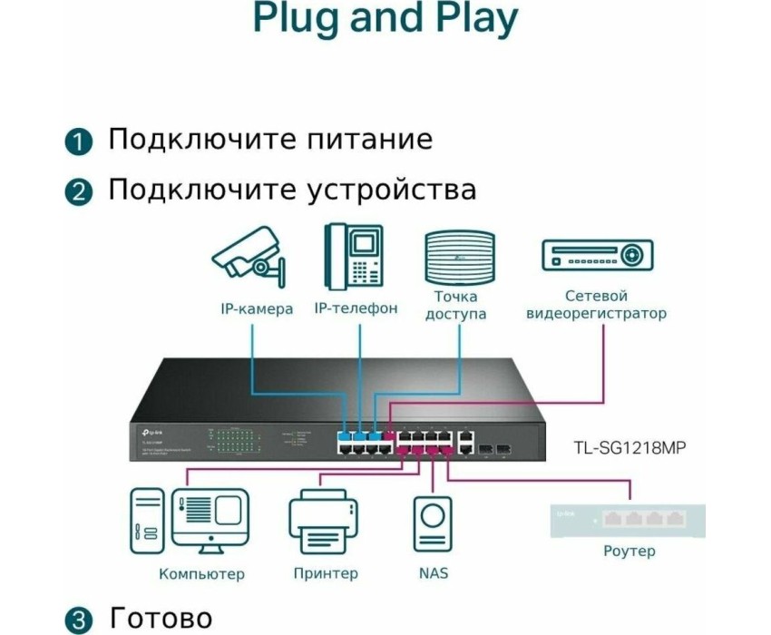 Коммутатор TP-LINK Коммутатор TL-SG1218MP, неуправляемый