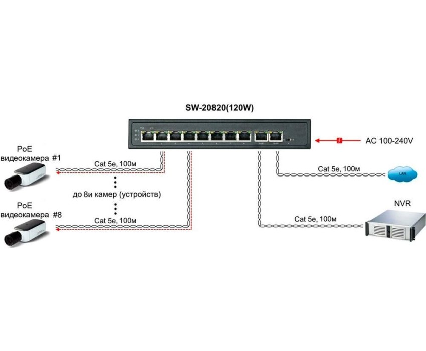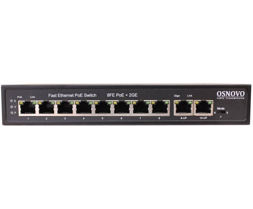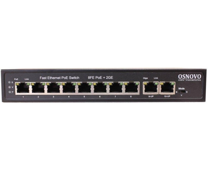 Тип: неуправляемый. Порты PoE: 8. PoE бюджет: 120. Исполнение: внутреннее. Материал корпуса: металл. Уровень коммутатора: L2. Габариты упаковки (ед) ДхШхВ: 0.27x0.225x0.07. Вес упаковки (ед): 0.9. Комплектация: Коммутатор, документация, кабель питания.. Внутренняя пропускная способность: 16 Гбит/сек. Сетевые стандарты: IEEE 802.3, 802.3ab, 802.3af, 802.3at, 802.3i, 802.3u, 802.3x. Входное напряжение (макс): 240. Входное напряжение (мин): 100. Пересылка пакетов: 14.88. Гарантия: 84 мес.. Порты 10-100Base-TX: 8 шт.. Порты 10-100-1000Base-T (Gigabit Ethernet): 2 шт.. Размеры: 210x150x35мм. Таблица MAC-адресов: 2K. Установка: настольный. Порты: 10/100BASE-TX 8 шт., 10/100/1000BASE-T 2 шт. Поддержка PoE: портов PoE 8шт, PoE бюджет 120 Вт. Тип: неуправляемый, настольный, L2. Исполнение: внутреннее; материал корпуса: металл. Таблица MAC-адресов: 2K