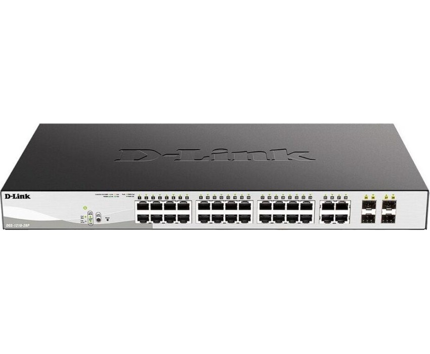 D-LINK SMB D-Link DGS-1210-28P/F5A Управляемый L2 коммутатор с 24 портами 10/100/1000Base-T и 4 комбо-портами 100/1000Base-T/SFP (24 порта PoE 802.3af/at, PoE-бюджет 193 Вт)