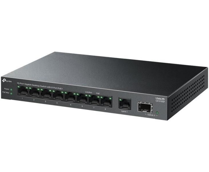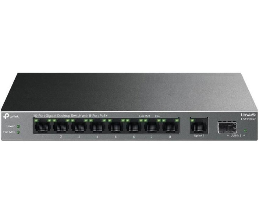 [Сетевое оборудование] TP-Link LS1210GP Настольный коммутатор с 9 гигабитными портами (8 портов PoE+) и портом SFP