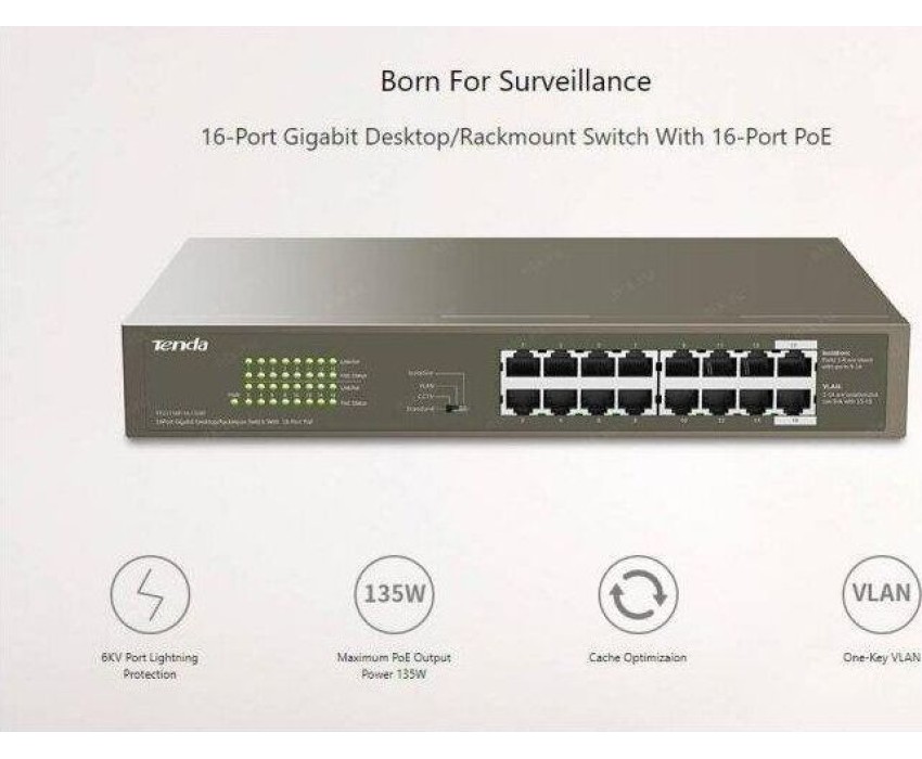 Коммутатор TENDA Коммутатор 16PORT G1116P-16-150W IP-COM