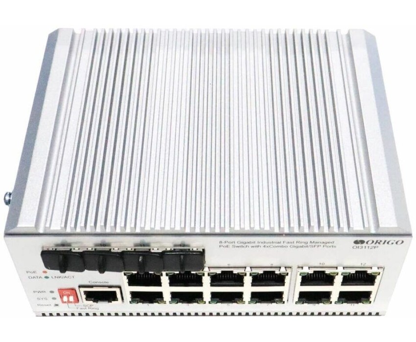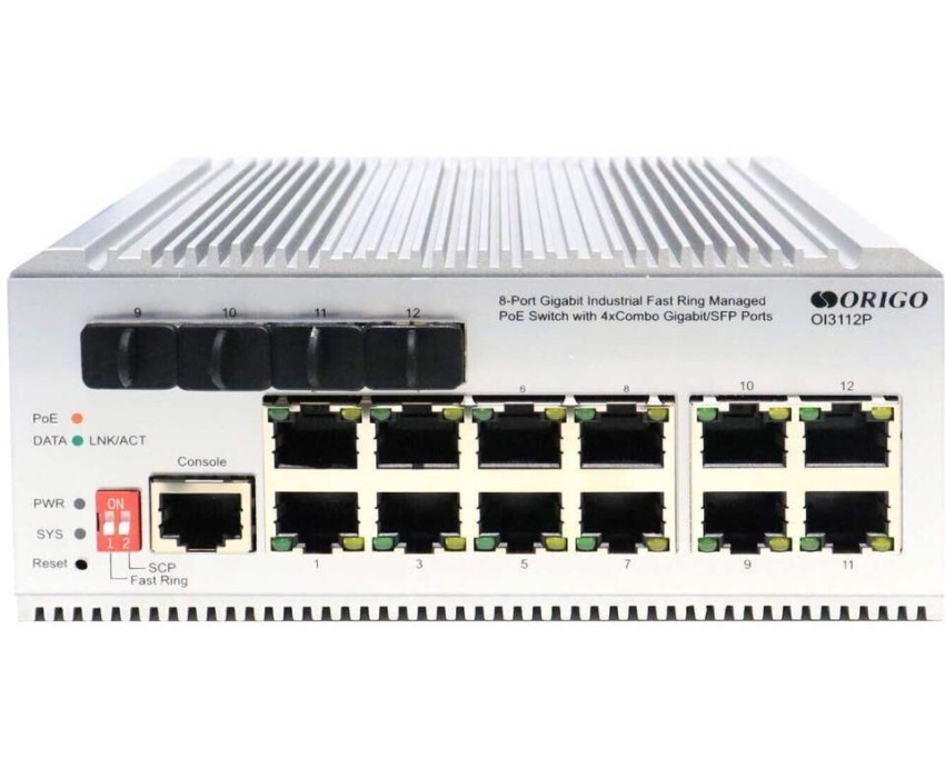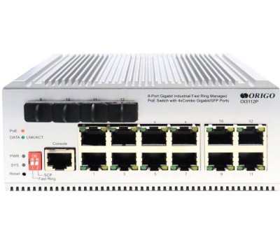 Коммутатор ORIGO Коммутатор OI3112P/185W/A1A 12-портовый гигабитный промышленный управляемый L2-коммутатор с 8 портами PoE+ и 4 комбо-портами