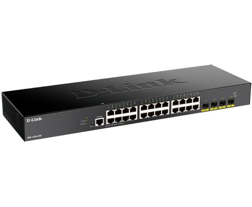 Коммутатор D-LINK Коммутатор DGS-1250-28X/A1A L2 Smart Switch with 24 10/100/1000Base-T ports and 4 10GBase-X SFP+ ports (448164)