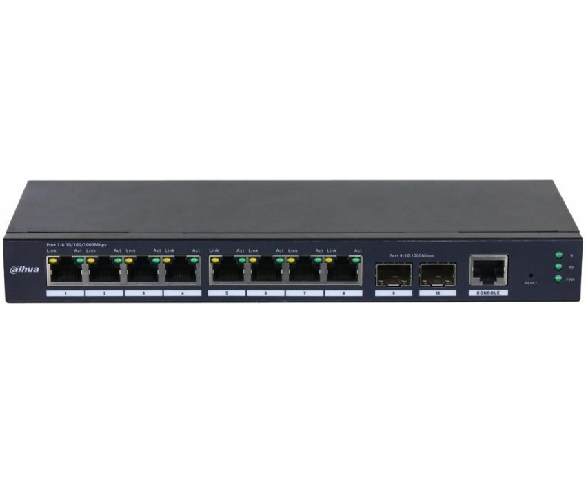 [Коммутаторы] DAHUA DH-SG4010-2F 10-портовый управляемый коммутатор, уровень L2, 8xRJ45 1Gb, 2xSFP 1Gb uplink, коммутация 20 Гбит/с, MAC-таблица 8К, металл