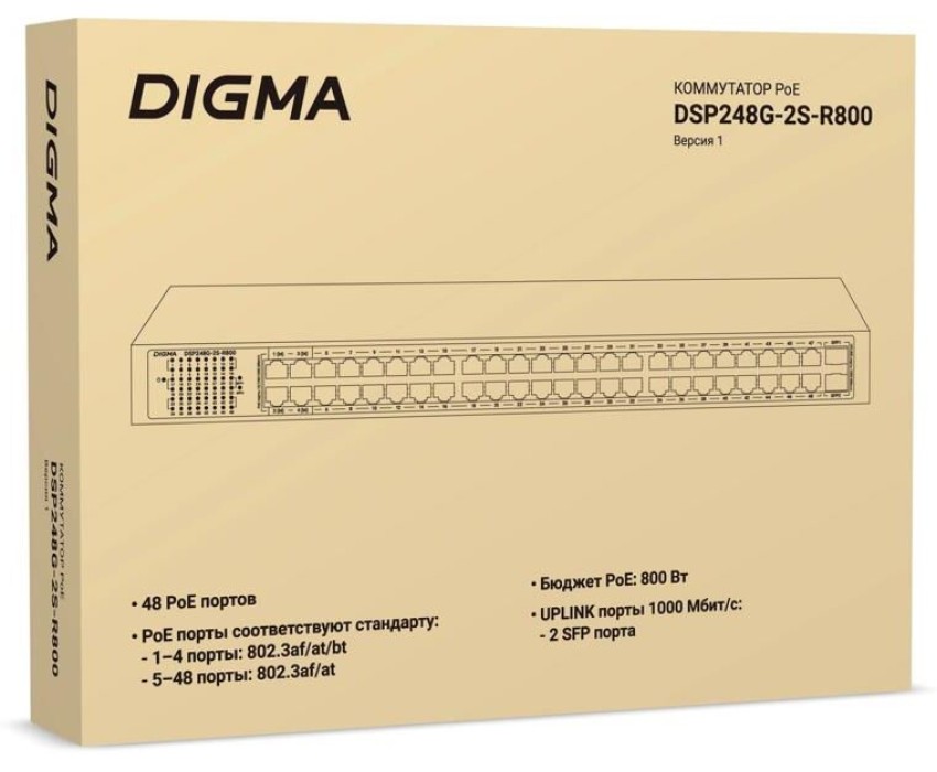 Коммутатор DIGMA Коммутатор DSP248G-2S-R800, неуправляемый [dsp248g-2s-r800 v1]