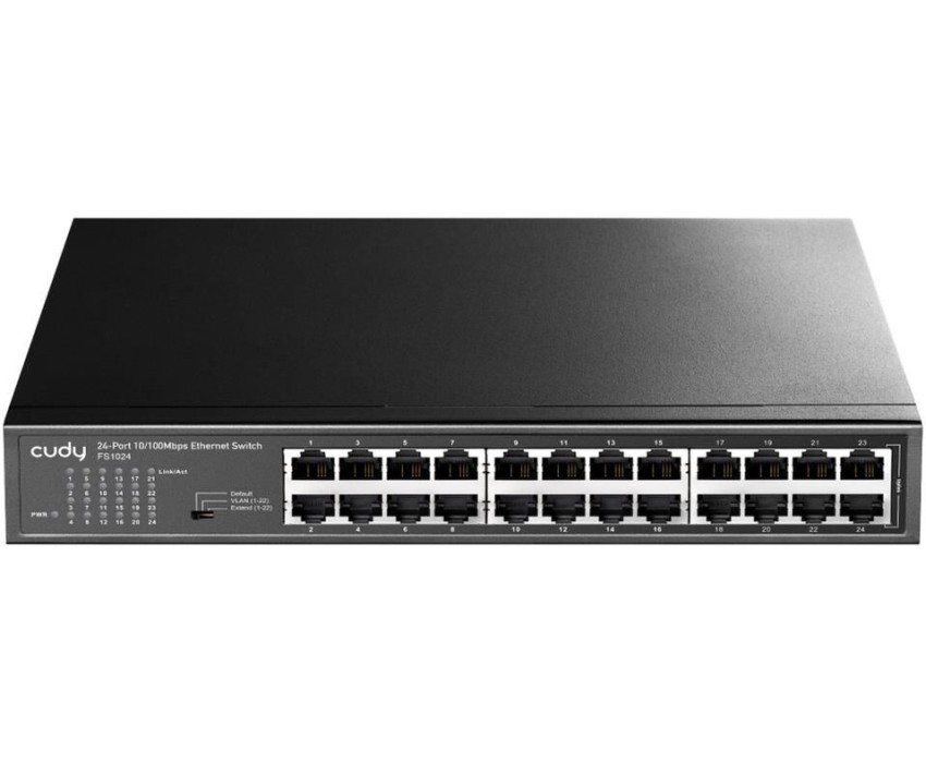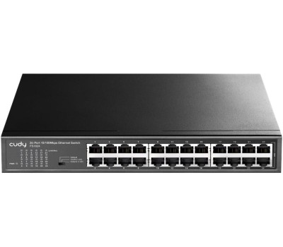 Коммутатор CUDY Коммутатор 24-Port 10/100 Mbps Metal Switch 24-Port 10/100 Mbps Switch, 24 10/100 Mbps RJ45 Ports, Switch/VLAN/Extend working mode DIP switch, Rack-mountable Steel Case, Power Saving, Plug & Play, Rack-Mount kits included