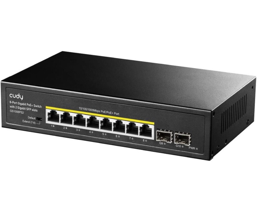 Коммутатор CUDY Коммутатор 8-Port Gigabit PoE+ Switch with 2 Gigabit SFP slot 120W 8-10/100/1000 BASE-T Gigabit ports, 2-1000 BASE-X SFP Slot, 8-port IEEE 802.3at PoE+ Injector, Supports PoE power up to 30W for each PoE port, Extend Mode (Port#7 and #8 su