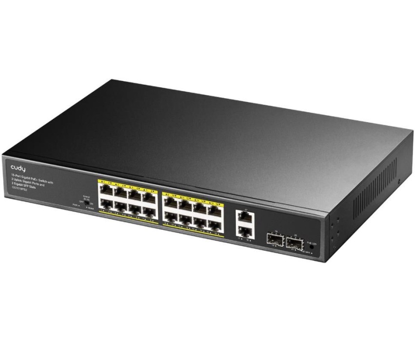 Коммутатор CUDY Коммутатор 16-Port Gigabit PoE+ Switch with 2 Uplink Gigabit Ports and 2 Gigabit SFP Slots 200W 16-10/100/1000 BASE-T Gigabit ports, 2-Port 10/100/1000 BASE-T Gigabit Uplink ports, 2-1000 BASE-X SFP Slot, 16-port IEEE 802.3at PoE+ Injector