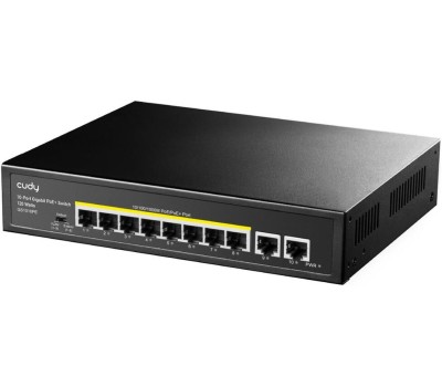 Коммутатор CUDY Коммутатор 8-Port Gigabit PoE+ Switch with 2 Gigabit Uplink Ports 120W 8 RJ-45 10/100/1000M PSE ports +2 RJ45 10/100/1000 Uplink Port Unmanaged PoE+ Switch 120W, 802.3af/at standard,Alternative 1/2(+),3/6(-), Steel Case, Watchdog, 120W int