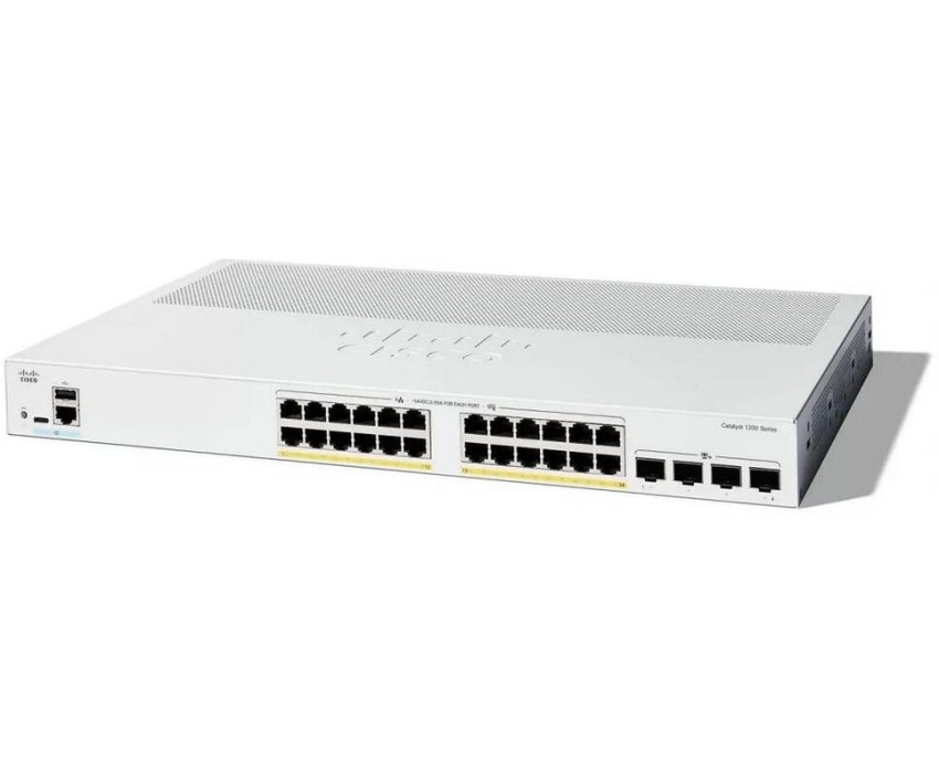 Коммутатор CISCO Коммутатор Catalyst 1200 24x10/100/1000 RJ-45 PoE+, 4x10G SFP+ uplinks, PoE+ 195W, Rack Mounting kit, Fanless, C1200-24P-4X