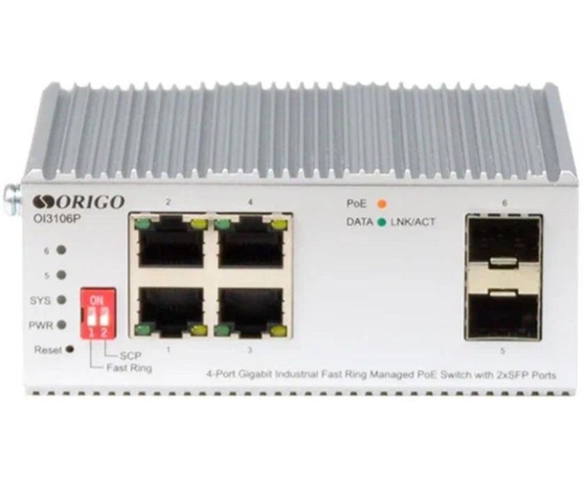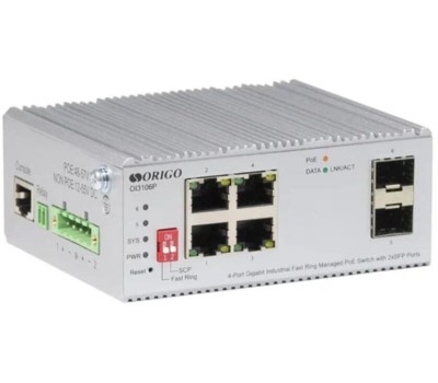 Коммутатор ORIGO Промышленный управляемый L2 PoE-коммутатор /4x1000Base-T/ 2x1000Base-X SFP/ -40..75°C/белый (OI3106P/60W/A1A)