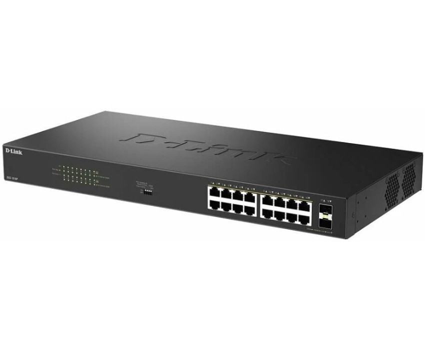 [Сетевое оборудование] D-Link DGS-1018P/B1A Конфигурируемый коммутатор с 16 портами 10/100/1000Base-T, 2 портами 1000Base-X SFP и DIP-переключателем (16 портов PoE 802.3af/at, PoE-бюджет 240 Вт)