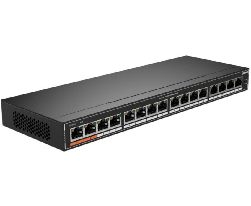 **Коммутатор Dahua 16-port Gigabit RJ45, 16-port PoE Switch, 190W, Metal case** Обеспечьте стабильное и высокоскоростное сетевое соединение с коммутатором Dahua! Устройство идеально подойдёт для создания надёжной сетевой инфраструктуры в офисе, на предприятии или в домашней сети. **Основные характеристики:** * 16 портов RJ45 с поддержкой Gigabit Ethernet — обеспечьте быстрое и стабильное соединение для множества устройств; * технология PoE (Power over Ethernet) — подавайте электропитание и передавайте данные через один кабель, упрощая развёртывание сети и сокращая количество проводов; * мощность 190 Вт — достаточно для питания множества устройств; * металлический корпус — надёжная защита устройства от повреждений и долгий срок службы. С коммутатором Dahua вы сможете создать эффективную и масштабируемую сетевую систему, которая будет отвечать вашим текущим и будущим потребностям. Надёжность, высокая скорость передачи данных и удобство использования — вот ключевые преимущества этого устройства.