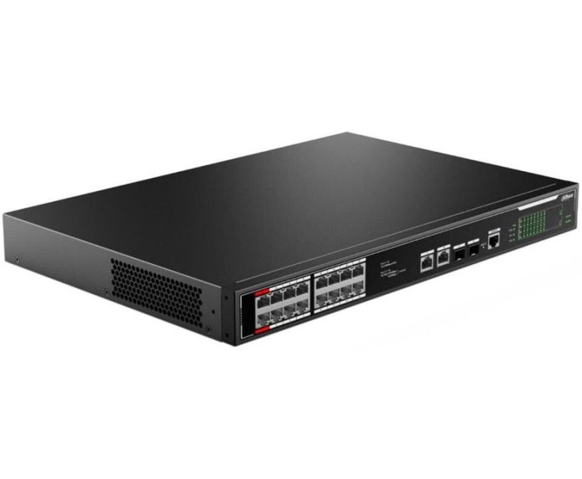 **Коммутатор Dahua 18-Port Managed 10/100M RJ45 16-port PoE Switch, 190W, Metal case** Обеспечьте надёжное и стабильное подключение сетевых устройств с коммутатором Dahua! Устройство идеально подойдёт для создания локальной сети в офисе, на предприятии или в домашней сети. **Основные характеристики:** * 18 портов: 16 портов с поддержкой PoE (Power over Ethernet) и 2 дополнительных порта; * скорость передачи данных: 10/100 Мбит/с; * общая мощность PoE: 190 Вт; * прочный металлический корпус, который обеспечивает долговечность и надёжную защиту от повреждений; * управляемый коммутатор, позволяющий гибко настраивать параметры сети и контролировать её работу. **Преимущества:** * **Универсальность:** коммутатор подходит для подключения различных сетевых устройств, включая IP-камеры, Wi-Fi точки доступа, IP-телефоны и другие устройства с поддержкой PoE. * **Простота использования:** благодаря управляемым функциям вы сможете легко настроить коммутатор под свои нужды и контролировать состояние сети. * **Надёжность:** металлический корпус и высокое качество компонентов обеспечивают стабильную работу устройства даже в условиях интенсивной нагрузки. * **Эффективность:** поддержка технологии PoE позволяет подавать электропитание на устройства через Ethernet-кабель, что упрощает развёртывание сети и снижает затраты на кабельную инфраструктуру. Выберите коммутатор Dahua для создания надёжной и эффективной сетевой инфраструктуры!
