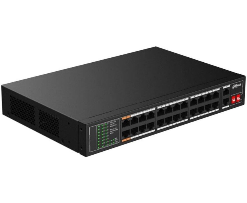 Коммутатор DAHUA Коммутатор 26-port 10/100M RJ45 24-port PoE Switch, 190W, Metal case