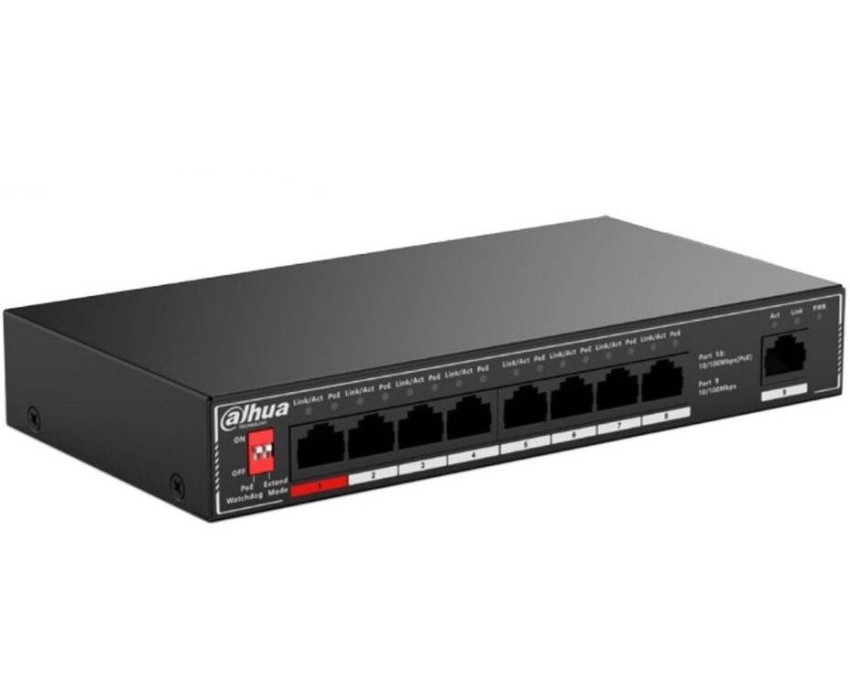 **Коммутатор Dahua 9-port 10/100M RJ45 8-port PoE Switch, 96W, Metal case** Обеспечьте стабильное и надёжное сетевое соединение с коммутатором Dahua! Устройство идеально подойдёт для создания локальной сети в офисе, на предприятии или в доме. **Основные характеристики:** * 9 портов: 8 портов с поддержкой PoE (Power over Ethernet) и 1 порт для подключения к сети; * скорость передачи данных: 10/100 Мбит/с; * общая мощность PoE: 96 Вт; * прочный металлический корпус, который надёжно защищает устройство от повреждений. С помощью коммутатора Dahua вы сможете: * подключить IP-камеры, IP-телефоны, беспроводные точки доступа и другое сетевое оборудование; * обеспечить стабильное питание и передачу данных по одному кабелю; * оптимизировать сетевую инфраструктуру и повысить эффективность работы. Выбирайте коммутатор Dahua — надёжное решение для вашей сети!