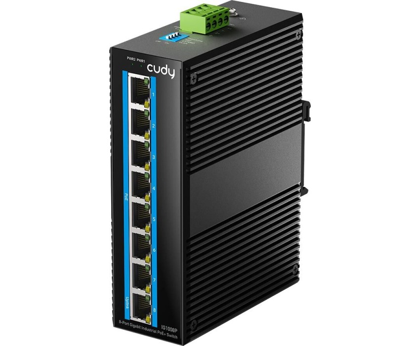 Коммутатор CUDY Коммутатор 8-Port Gigabit Industrial PoE Switch 8-Port Aluminum Industrial PoE Switch, 1000Mbps 8-Port RJ45, 802.3at/af, Din-rail design, Power supply: DC12~52V work temperature:-40 °C-80°C, Power Adapter Not Included