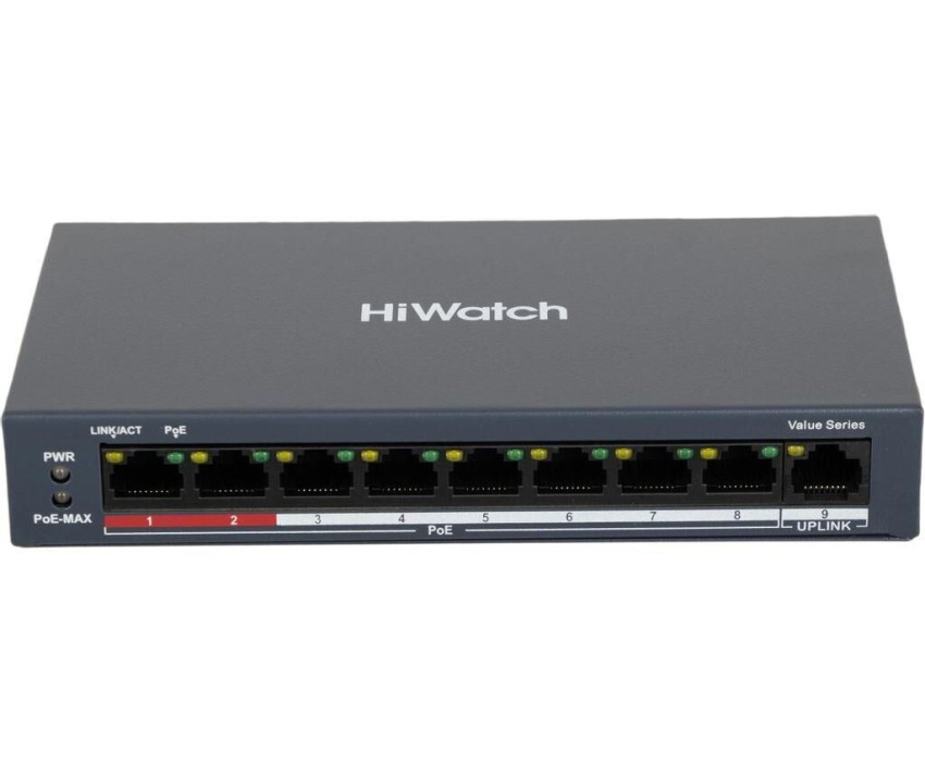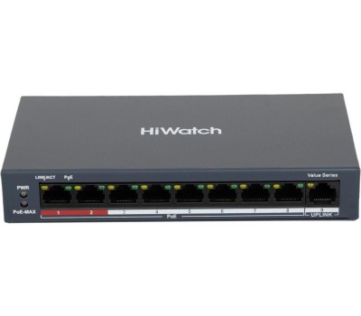 Коммутатор HIWATCH Коммутатор DS-S908P(B) 9x100Мбит/с 8PoE 60W неуправляемый