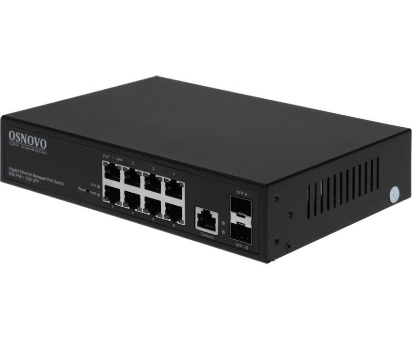 Коммутатор OSNOVO Коммутатор SW-80802/L(150W) (L2) 8x1Гбит/с 2SFP 8PoE+ 150W управляемый