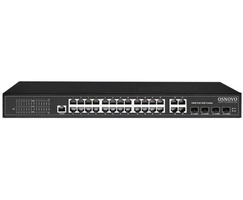 Коммутатор OSNOVO Коммутатор SW-8244/L(400W) (L2+) 28x1Гбит/с 4xКомбо(1000BASE-T/SFP) 24PoE+ 400W управляемый