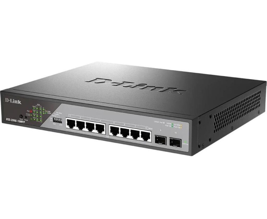 Коммутатор D-LINK Коммутатор DSS-200G-10MPP/A1A (L2) 8x1Гбит/с 2SFP 8PoE++ 242W настраиваемый
