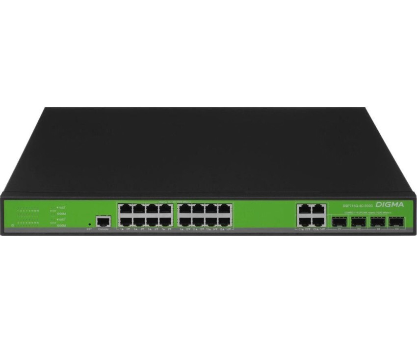 Коммутатор DIGMA Коммутатор DSP716G-4C-R300 (L2+) 16x1Гбит/с 4xКомбо(1000BASE-T/SFP) 300W управляемый