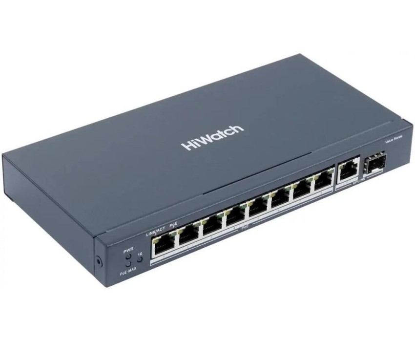 Коммутатор HIWATCH Коммутатор DS-S1008GP (L2) 8x100Мбит/с 2x1Гбит/с 1SFP 8PoE 58W неуправляемый