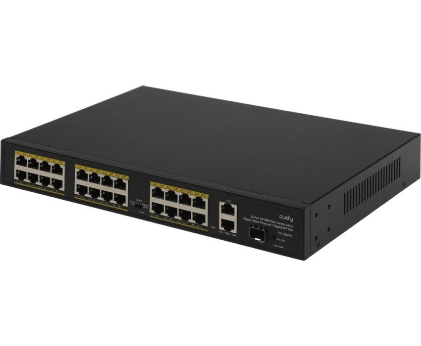 Коммутатор CUDY Коммутатор FS1026PS1 (L2) 24x100Мбит/с 2x1Гбит/с 1SFP 24PoE 24PoE+ 300W неуправляемый