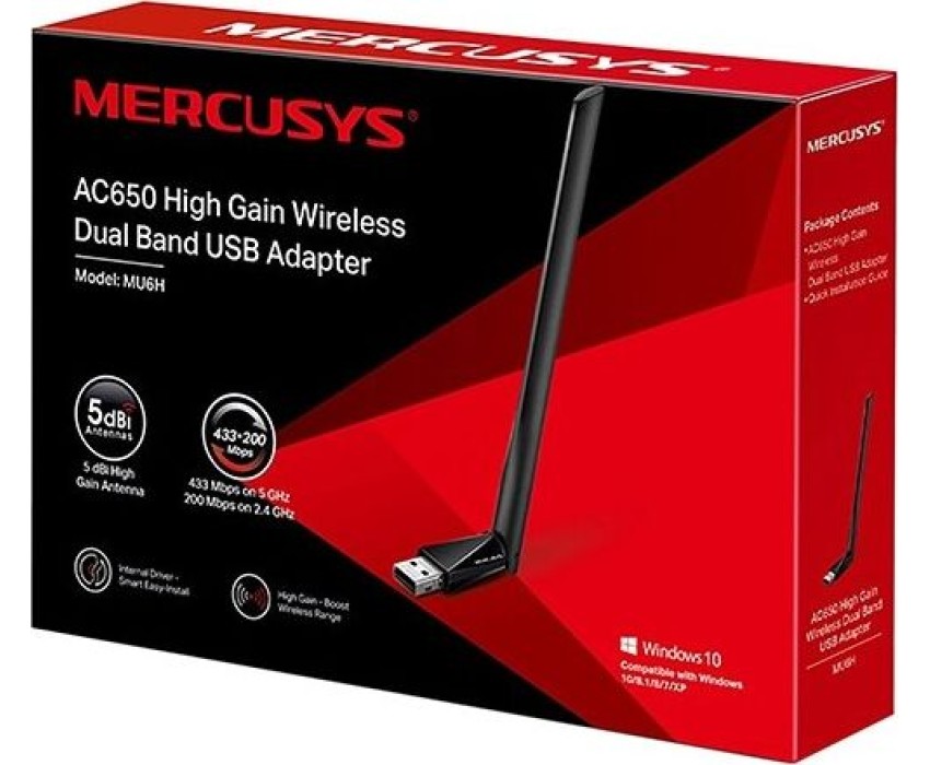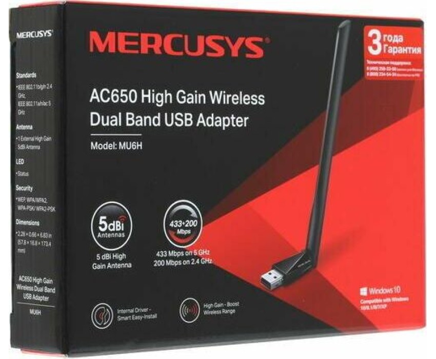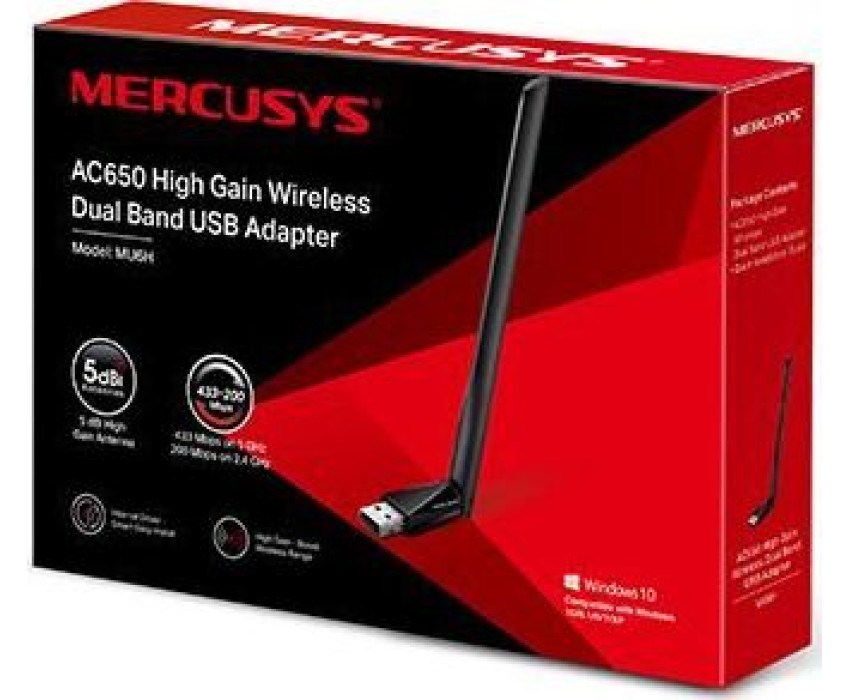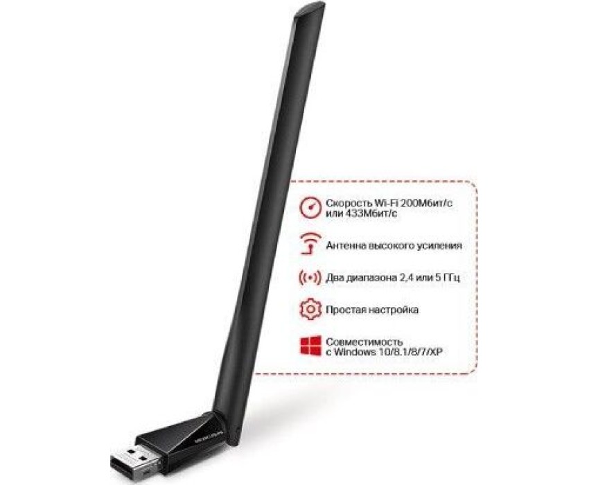 AC650 Двухдиапазонный USB-адаптер высокого усиления, до 433 Мбит/с на 5 ГГц и до 200 Мбит/с на 2,4 ГГц, одна внешняя антенна, USB 2.0, поддержка ОС Windows 10/8.1/8/7/xp.